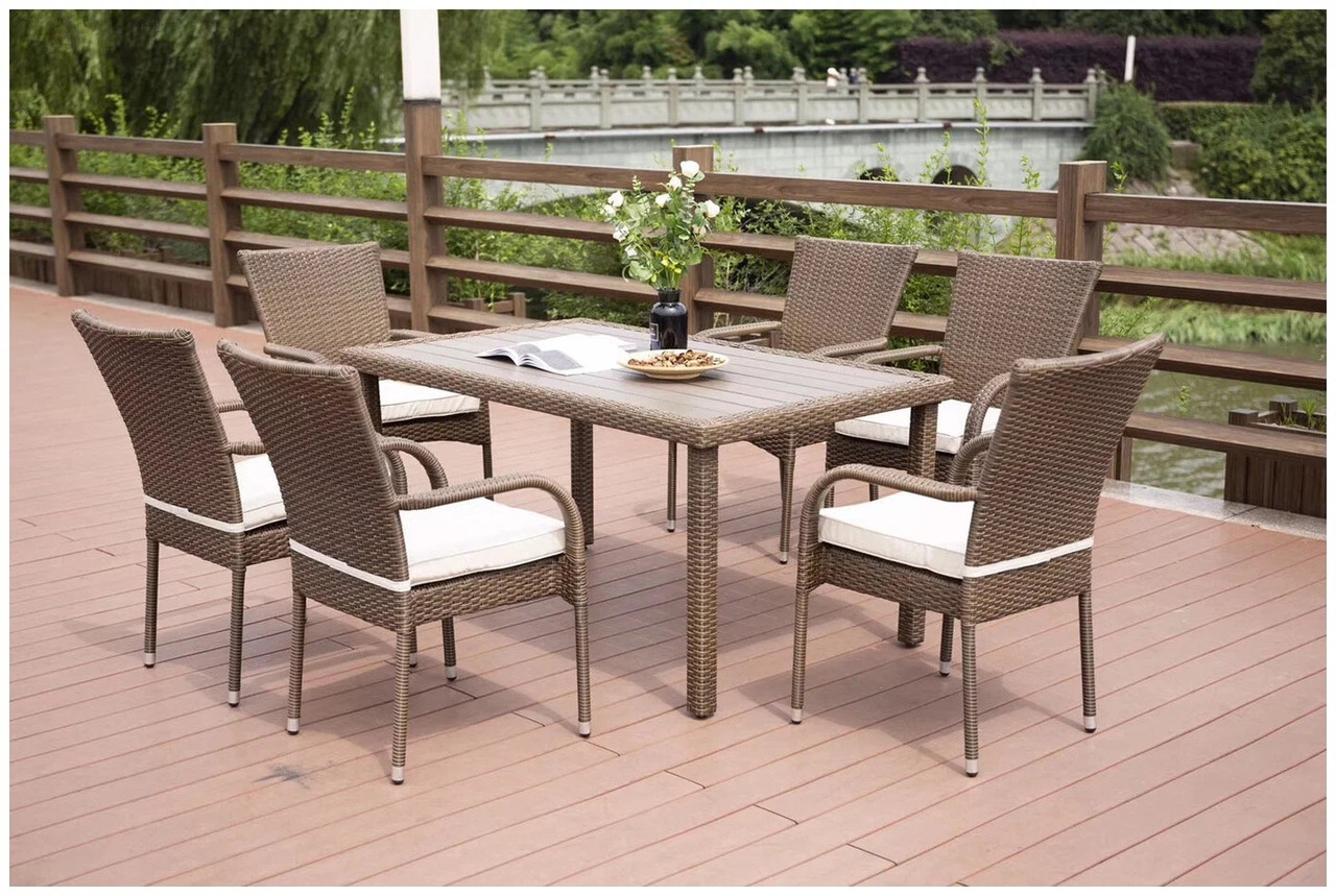 Прочность, которой отличается ротанговая мебель, подкреплена дополнительными металлическими креплениями. Внешний ротанговый слой защитит изделие от любой непогоды, если вы решите расположить стол под открытым небом.